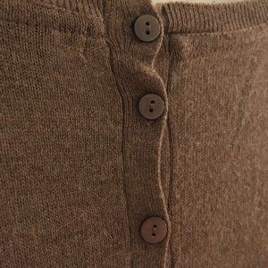 This is a lightweight sweater dress with a button detail on the back. It comes back in a little at the hem but isn't overly fitted. It is in good condition overall but does have a few pills.