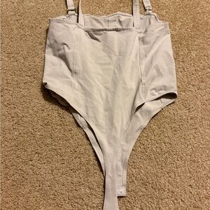 Elegant light gray bodysuit with sleek design. Ideal for versatile styling.