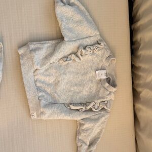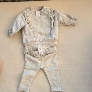 Charming light gray sweatshirt and sweatpants with ruffle accents. Cozy and stylish for little ones. So cute and warm. 95% cotton from Cotton on.