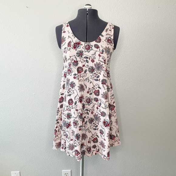 H&M light pink floral sleeveless mini dress. Round neckline, keyhole back, mini length.