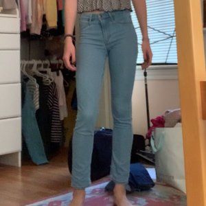 Super stretchy light wash, straight leg jeans. They have no rips. Size 25. Lightly worn and in great condition!
