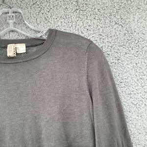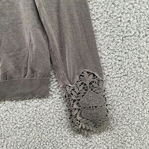 H&M Sweater Womens Small S Crochet Sleeves Lace Back Taupe Brown Crewneck
