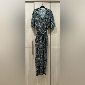 H&M Limited Edition Leopard Print Faux Wrap Jumpsuit | Teal with Pink Spots | Size 6
