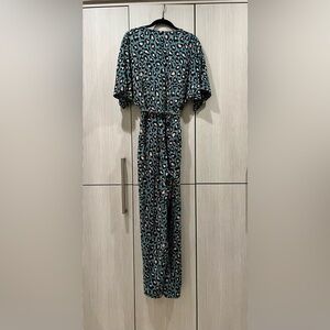 H&M Limited Edition Leopard Print Faux Wrap Jumpsuit | Teal with Pink Spots | Size 6