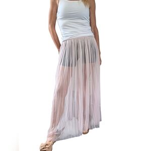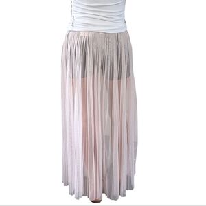 H&M Limited Edition SHEER Mesh Pleated Long Pastel Pink Festival Skirt Size 4