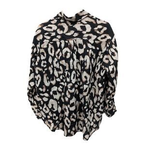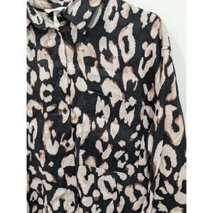 H&M Linen Animal Print Button Front Long Sleeve Oversized Top Size XS