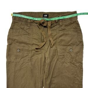 H&M Linen Blend Cargo Roll Tab Crop Pants in Olive Green Size 6 Womens Straight