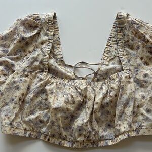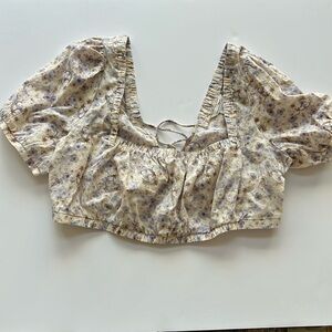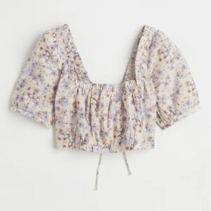 H&M Linen Blend Floral Crop Top NWT. 52% linen, 48% cotton. Square neckline with covered elastic. Open section on back with tie closure. Short puff sleeves with narrow cuffs. Elastic bottom. Unlined. Such a cute top for spring and summer! Size XL