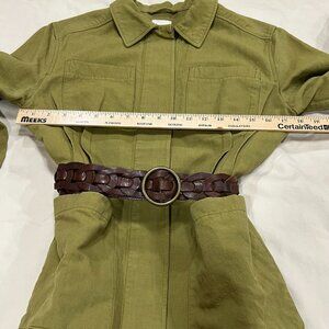 H&M Linen Blend Green Utility Jacket w Braided Leather Holister Belt Size 2