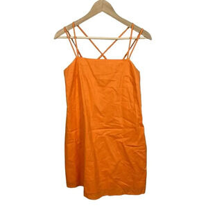 H&M Linen Blend Mini Dress Square Neck Strappy Orange Size Small Women’s
