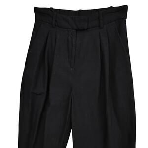 H&M Linen Blend Pleated Front Pants Size 2 Black 2 Front Pockets Zipper Closure