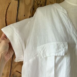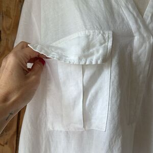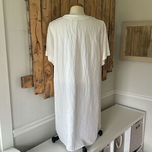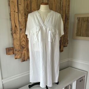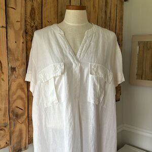 H&M Linen Blend Pop Over Shirt Dress Cover Up Size Large Knee White Lightweight