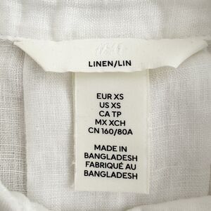 H&M Linen Blouse Women's Size XS White Loose-Fit Button Front. Airy, woven 100% linen, Cotton, buttons at front and an inverted box pleat at back. Heavily dropped shoulders, elbow-length sleeves and a gently curved hem.