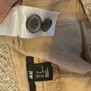 Elevate your summer wardrobe with these stylish H&M linen blend shorts. The high-rise, cargo-style shorts come in a versatile brown color and feature practical pockets, making them perfect for travel, activewear, or casual outings. The lightweight, easy-care fabric makes them ideal for walking, beach trips, or any outdoor adventure.