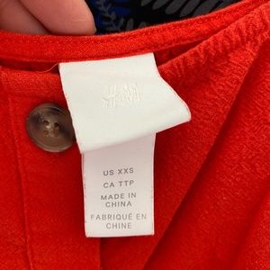 H&M Linen Like orangey/redish dress with sleeves. Light and easy to iron. The sleeves dress up the dress and make it fun. Wear with belt or without. Length goes to ankle and I'm 5'2- fits like a small