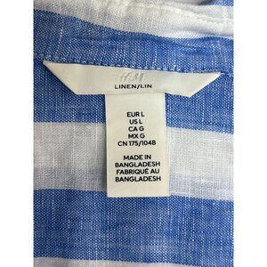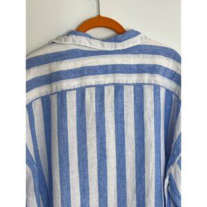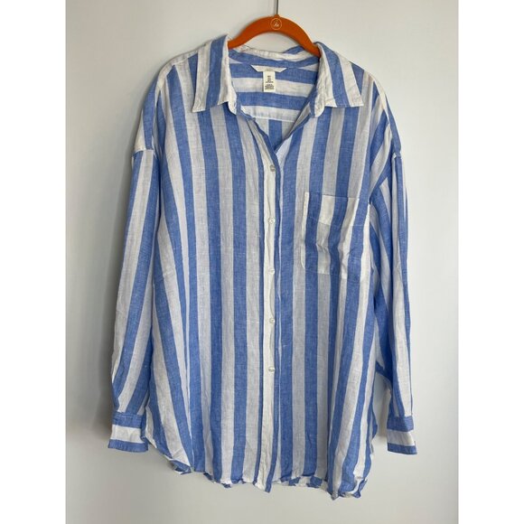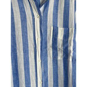 H&M Linen Long Sleeve Button Front Oversized Shirt Blue White Stripe Size Large