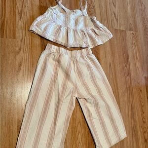 H&M toddler girls linen striped pink brown & beige matching set.