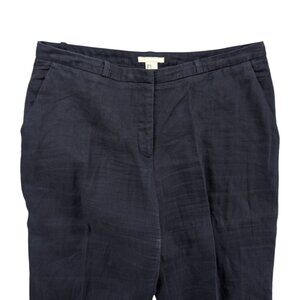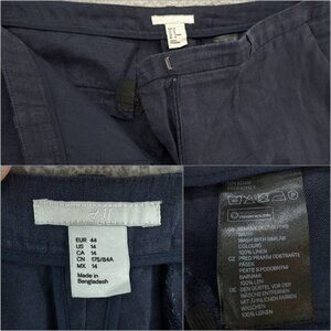 H&M Linen Pants Womens Navy Blue Flat Front Trousers Size 14
