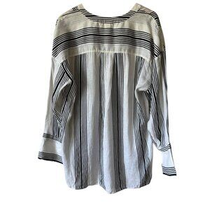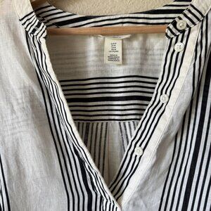 H&M Linen Popover Shirt Tunic Oversized Band Collar Dropped Shoulders Wide Cuffs