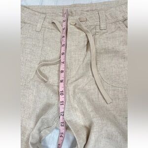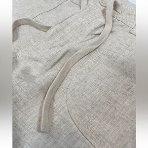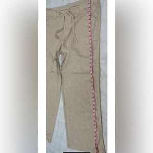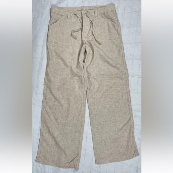 H&M Linen / Viscose Blend Straight Pants Tie Woman’s Size M Tan Relaxed Coastal