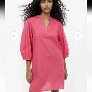 H&M Linen-Blend Tunic Dress Pink XS Lightweight Summer Minimalist