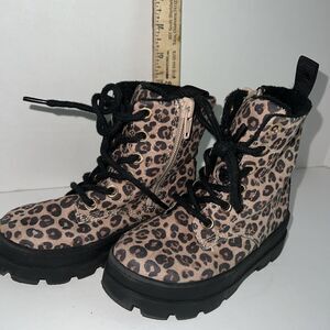 H&M Little Girls 8.5 Warm-lined Boots with Laces Light beige/leopard print