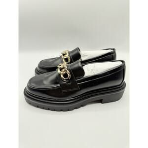H&M Loafers Womens 9 Black Leather Gold Chain Lug Soles Chunky Platform Boho