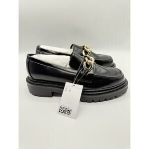 H&M Loafers Womens 9 Black Leather Gold Chain Lug Soles Chunky Platform Boho NEW!!!