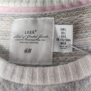 H&M Logg L White Cream Grey Fair Isle Angora Blend Women’s Sweater