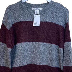 H&M L.o.g.g. Womens Sweater Small Gray Maroon Varsity Stripe NWT Acrylic Blend