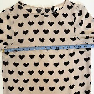 H&M Long Sleeve Cream Blouse with Black Hearts Size 2