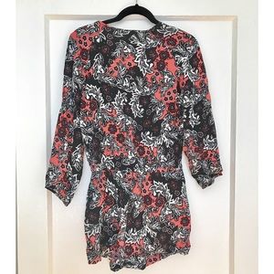 Beautiful long-sleeves floral romper with clasp front closure from H&M. Black, white, and deep red floral pattern on a rich coral background. Only worn/washed once, excellent used condition. Size 6.