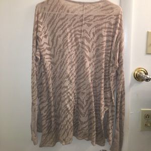 Light printed sweater with slits on the side. The material is see-through so it looks great with a bralette or cami!