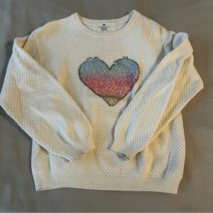 H&M Long Sleeve Textured Sweater with Flip Sequin Heart Design