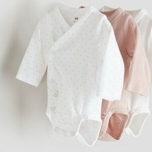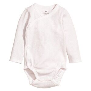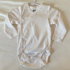 H&M Long Sleeve Wrap Over Bodysuit - White and Pink Polka Dots