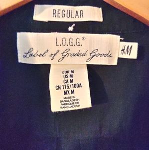 pictures may seem to be black but I can assure you the shirt is navy. sz medium, no flaws or fade 16in. neck w/ pearly buttons
