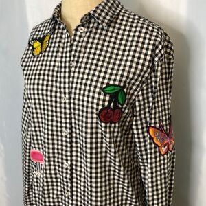 H&M Long sleeve checked cotton shirt with embroidered Size 4