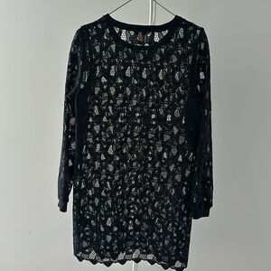 H&M | Longsleeve Sheer Lace Dress - Deep Navy