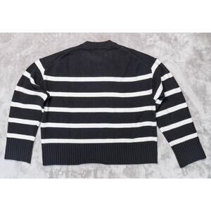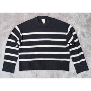 H&M Loose Fit Black Ivory Striped Crewneck Sweater Womens Size L