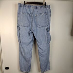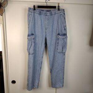 H&M Loose Fit Elastic Drawstring Waste Ample Cargo Wide Leg Jeans Sz XL Blue