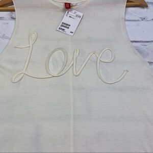 H&M Love Muscle Tank Women’s XS Off White With Love Stitched on NEW condition with Tags Message me with any questions ⚡️⚡️Fast Shipper⚡️⚡️