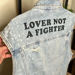 H&M Lover Not a Fighter Denim Distressed Oversized Vest NWT