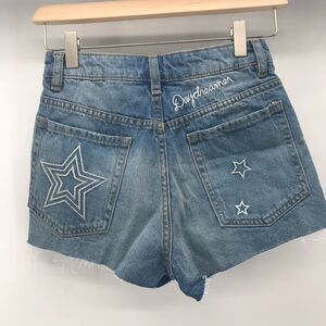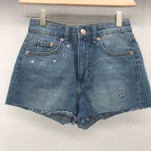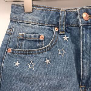 H&M Loves Coachella Daydreamer Denim Shorts Womens 2 Silver Embroidered Stars