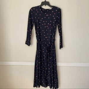H&M | Lyocell Blend Belted Midi Dress Navy Floral