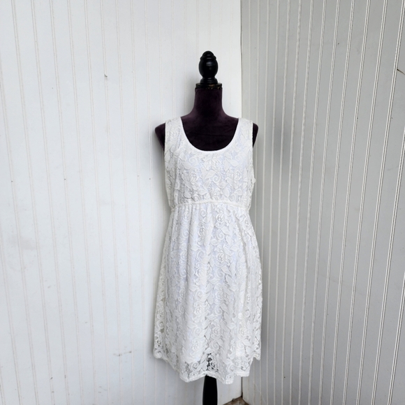 H&M MAMA Lace Stretch Sheath Dress Ivory White Sleeveless Maternity Sz XL