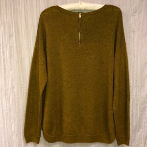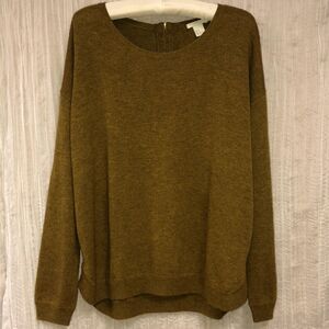 H&M M Mustard Heather Back Zip Wool Blend High Low Crewneck Pullover Sweater