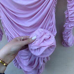H & M Magda Butrym Bodycon Crepe Mini Dress In Lilac Mock Neck Rose Appliqué Stretch Jersey Long Sleeves