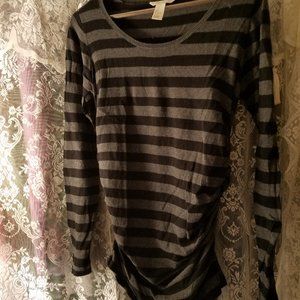 HM Mama MATERNITY Sweater Black & Gray Horizontal Stripe, Side Ruching, Comfort