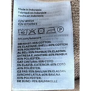 The product is a pair of H&M Mama maternity shorts in tan color, designed specifically for women in size L. These jogger-style shorts are comfortable and stylish for expectant mothers, providing a relaxed fit during pregnancy. Made by the popular brand H&M, these shorts are perfect for warm weather and can be worn throughout the day with ease.