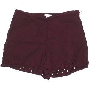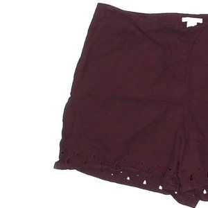 H&M Maroon High Rise Waist Shorts with embroidered design around the trim. Side zipper. Designs around the bottom of the legs.